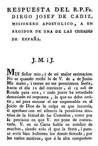 Respuesta de fray Diego José de Cádiz