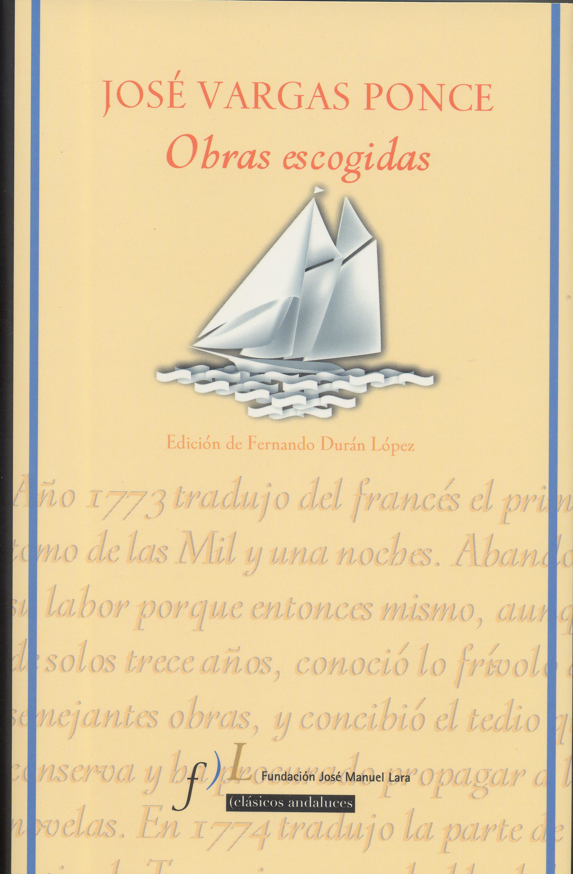 11.- José Vargas Ponce, Obras escogidas. Edición, introducción y notas de Fernando Durán López, Fundación José Manuel Lara (Clásicos Andaluces), Sevilla 2012 (CLXXVIII + 464 pp.). ISBN: 978-84-96824-91-1.
