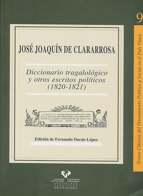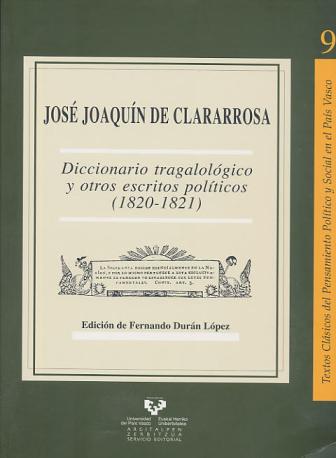 5.- José Joaquín de Clararrosa, Diccionario Tragalológico y otros escritos políticos (1820-1821), Servicio Editorial de la Universidad del País Vasco / Euskal Herriko Unibertsitateko Argitalpen Zerbitzua, Bilbao 2006 (316 pp.). Ed., intr. y notas de Fernando Durán López. ISBN: 84-8373-806-6. [PDF ÍNTEGRO.]