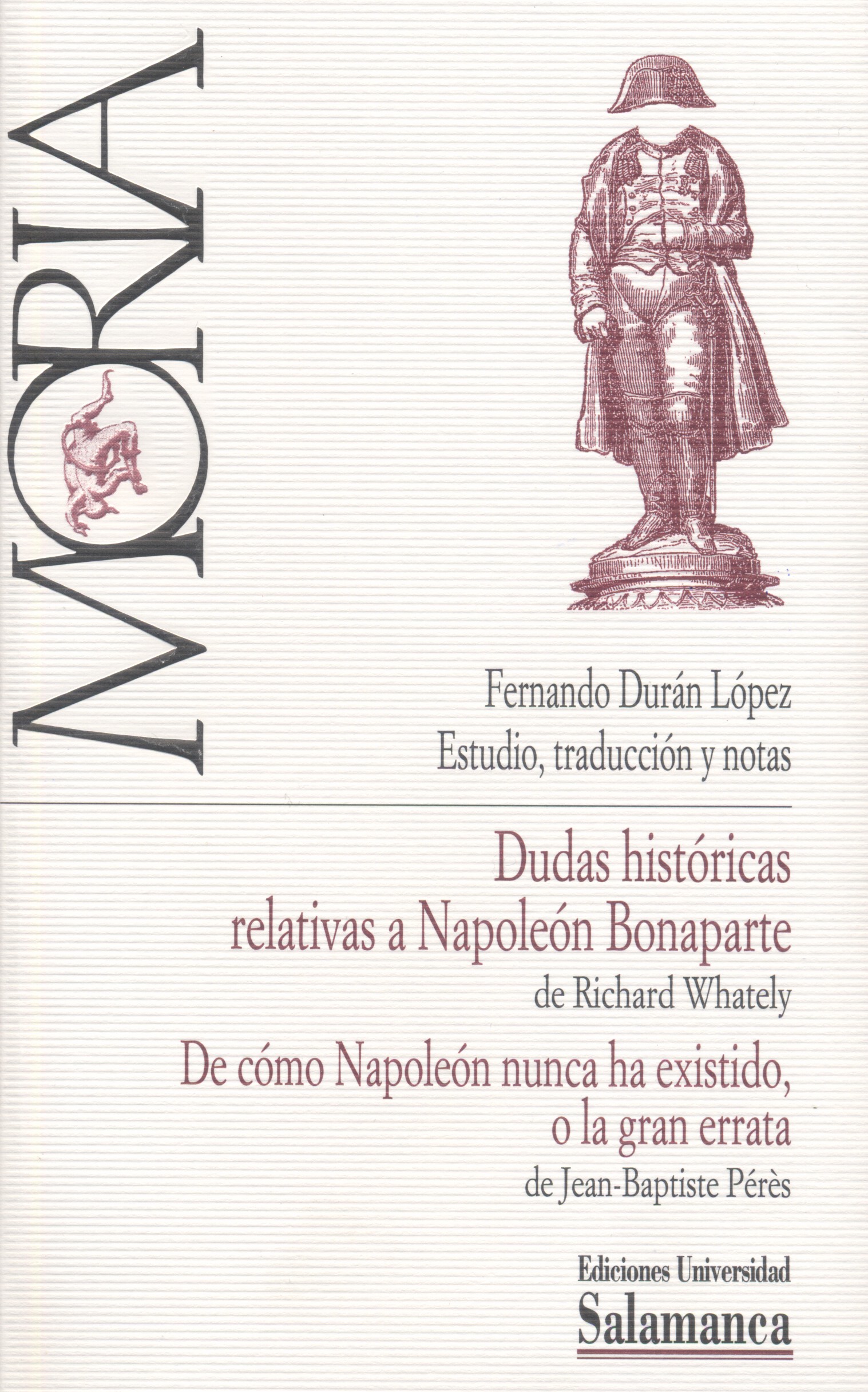 12.- Richard Whately – Jean-Baptiste Pérès, Dudas históricas relativas a Napoleón Bonaparte – De cómo Napoleón nunca ha existido, o la gran errata, Ediciones Universidad de Salamanca (Moria), Salamanca 2014 (326 pp.), Estudio, traducción y notas de Fernando Durán López. ISBN: 978-84-9012-453-6.
