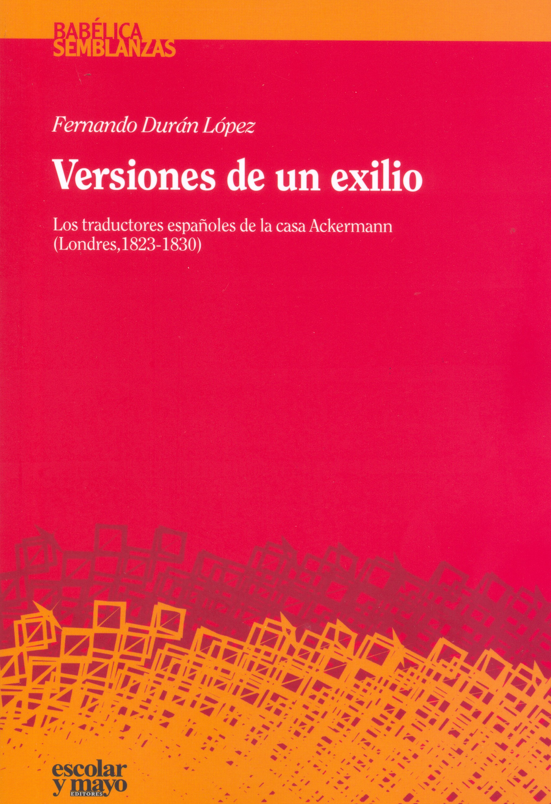 8.- Versiones de un exilio. Los traductores españoles de la Casa Ackermann (Londres, 1823-1830), Escolar y Mayo editores (Babélica. Semblanzas), Madrid 2015 (217 pp.). ISBN: 978-84-16020-56-0. [Índice en PDF.]